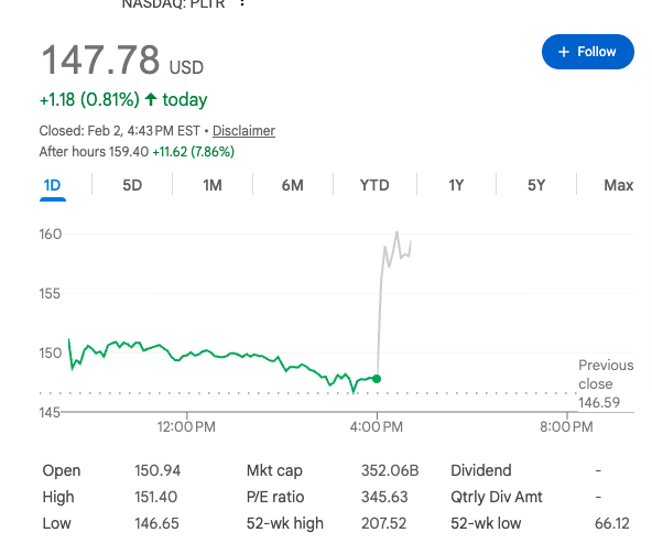 Adjusted earnings per share came in at 25 cents, two cents above consensus, while net income rose to about $609 million, helping deliver one of Palantir’s strongest profits to date.